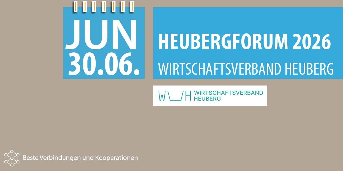 Von Mitgliedern | Kooperationspartnern für Mitglieder30.06.2026 // Heubergforum 2026 // Wirtschaftsverband Heuberg23.04.2026 Herzliche Einladung zum Heubergforum 2026 Innovation Impulse für die Zukunft - aus der Region, für die Region Das Heubergforum bringt ...